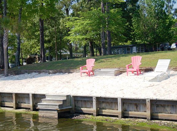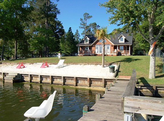 Beautiful brick, waterfront home in White Oak 1 subdivision with excellent water, pier, and an awesome sandy beach. Other features include great water views, open/split bedroom floor plan, smooth ceilings, hardwood floors, gas log fireplace, master suite, guest rooms and office on the main level, second level bonus room w/ attic storage, built -ins throughout, and a trex deck. A MUST SEE!