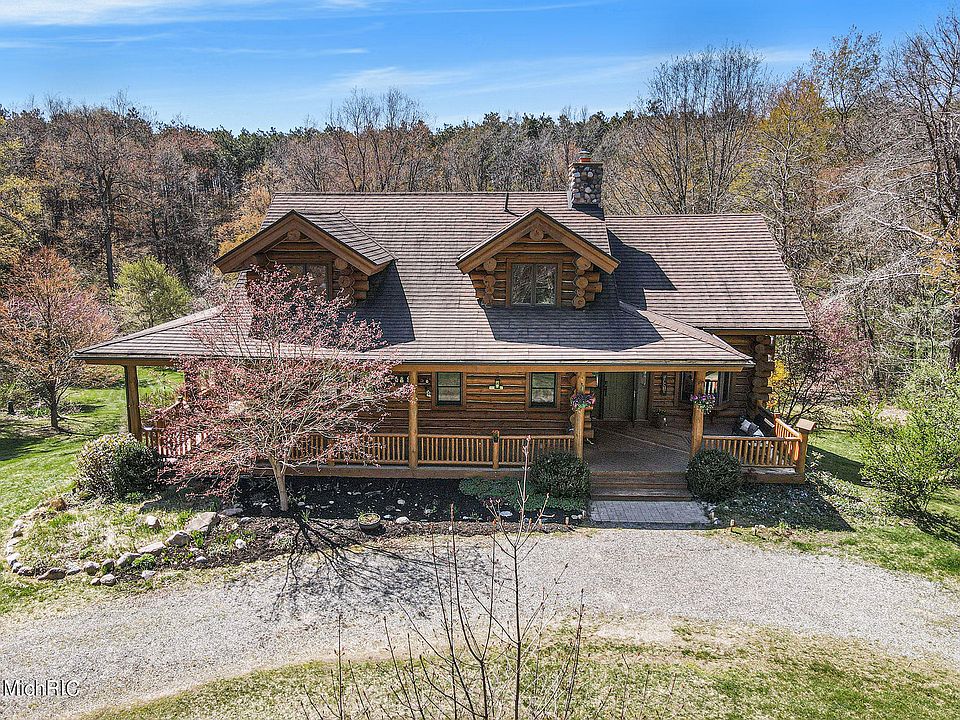 Welcome to 1861 N Payne Lake Rd.As you enter the long driveway you are greeted w/ a tall Pine Tree forest.Once you see the home peak around the corner,you are welcomed by a large covered porch w/ a bay window that has copper roofing.This picturesque Michigan made log home is situated in the middle of 10 acres w/ privacy & wildlife abound.Located within minutes of area lakes & state game properties,This home offers great opportunities.Features include hardwood flooring,Cork floors in the bathrooms & master bedroom,main floor laundry,3 season room w/ heated tile floors & a large stone fireplace in the living room.Please submit your highest and best offer. Seller and listing broker agree that all offers will be presented to the seller on Tuesday, April 27th at 12:00 p.m.