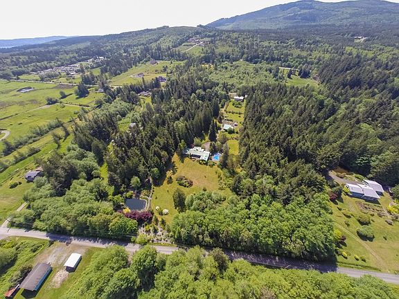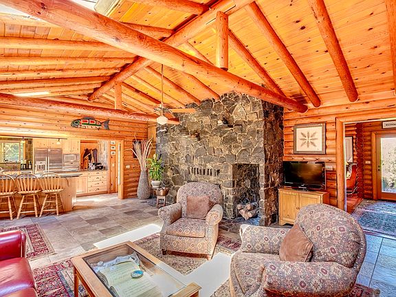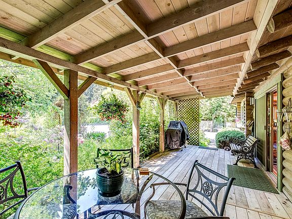 On over 8 acres of pristine, private land sits a 2863 sqft Ranch style log home. Sunset magazine landscape w/sprinkler system provides year round interest. Mini ranchette, ample room for animals, fully fenced vegetable garden w/raised beds, fruit trees, 30+ blueberry bushes, plus raspberry, blackberry, currants & quince, large woodworking shop w/200 amp service. Magical grounds w/two ponds linked by meandering trail, one w/wisteria covered bridge. Residence renovated & with a cozy guest cottage.