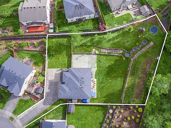 THE greatest home/yard in DuPont. Nestled in the back of the quiet DuPont community abutting the Puget Sound, this home sits on perhaps the largest lot in DuPont. This is THE place kids want to hang out with your own basketball court, huge back yard with in-ground slots for volleyball poles, a zip-line, in-ground trampoline, play set, waterfall, fruit trees, garden area, and the amazing trails to the Puget Sound out your back fence. Tucked back from the road on 0.69 acres, with a greenbelt directly behind for added privacy. Greenbelt accesses miles of wooded trails along the Puget Sound. This is the place everyone wants to be! The large patio is terrific for BBQs, rebounder net & Goalrilla basketball system are a sport enthusiast's paradise! Open interior layout with surround sound, crown molding, built-ins, and upgrades, including A/C for those occasional hot PNW summer days. ADDITIONAL INFO This home has been lovingly maintained & upgraded to reveal gorgeous French doors, recessed lighting with dimmers on main floor & master suite, wainscoting shadow boxing in dining room, crown molding in all six bedrooms, four walk in closets & large master closet, pre-wire for surround sound with entertainment center in FMR & master sanctuary with separate sitting area, walk-in shower, separate soaker tub & double sinks. The added parking in the driveway assures easy coming & going for you & guests, plus the 3-car garage comes with custom built-in shelving & utility sink that is perfect when it comes time to maintenance your cars or tackle your DIY projects. The backyard is accentuated with retaining boulder rock walls, garden shed & floodlights over sport court & backyard volleyball area.
