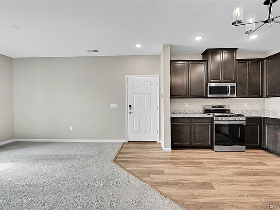 Convenience meets cozy in this 2-bedroom haven! Unleash your inner chef in this stunning kitchen brimming with sleek stainless steel appliances! The modern design adds a touch of sophistication, while the ample counter space and storage ensures seamless meal prep and organization. Just imagine: whipping up culinary delights surrounded by this sparkling ambiance, then stepping right into the spacious living room for effortless entertaining. Picture yourself unwinding on the sunny south-facing balcony, soaking up natural light year-round. And for added convenience, two cleverly concealed storage closets keep your balcony clutter-free. But that's not all! The ensuite primary bedroom provides a luxurious retreat, offering ample space for relaxation and rejuvenation. Skip laundry day hassles with the included stackable washer & dryer tucked neatly in the hallway closet. Plus, enjoy keyless entry with the handy Ring doorbell and keypad! You'll also find a tankless water heater and smart thermostat. Live just minutes from Buckley Air Force Base, Aurora Medical Center, Children's Hospital, Aurora Mall, and parks. Everything you need at your fingertips! Don't miss out! This move-in-ready gem won't last long. Schedule your showing now and experience the comfort and convenience for yourself!