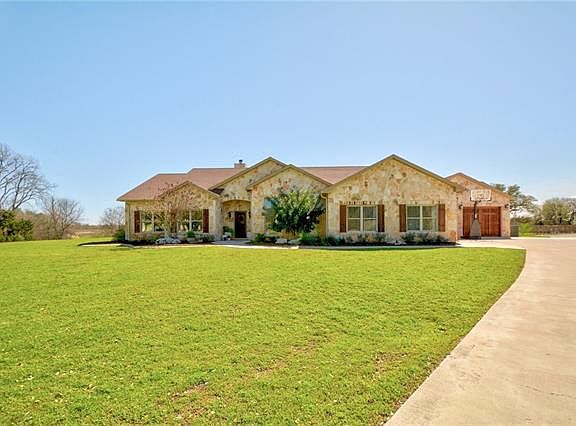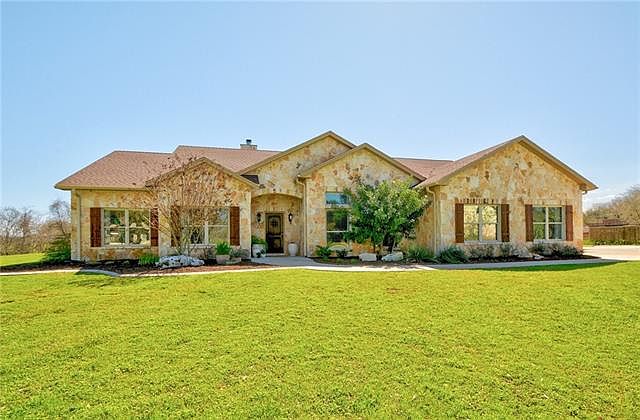 Beautiful ranch style home on 1.5 acres. Open the door to tall ceilings and a spacious open concept home. This 4 bed/3 bath home has 2 masters and backs to the hill country creating a private retreat. This home is full of upgrades including your own private gym area, safe room, and extra flex space!