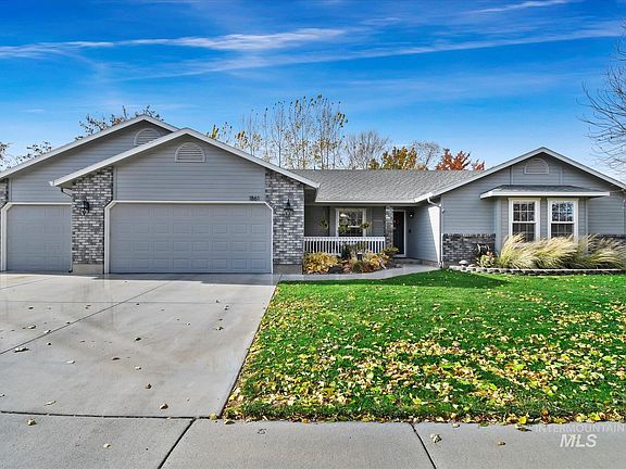 Stunning and gorgeous single level home in popular Sportsman Point! You will feel right at home the moment you come inside! Updates throughout with newer interior paint, carpet, real hardwood flooring, granite counters and more! This open concept split floorplan with tons of natural light and vaulted ceilings is the perfect home to entertain family and friends this holiday season! Kitchen features generous amounts of cabinets and counter space, SS appliances, and pantry. 4th bedroom or office right off the living room gives you flexibility for this room. Huge primary suite with attached updated private bath and luxurious soaking tub for cold winter nights. Cozy up to a warm fire under your covered patio and enjoy a serene, peaceful and private backyard with lush landscaping and mature trees. Oversized 3 Car Garage and concrete RV parking pad with electrical hookup. Super close to commuting, parks, outdoor rec, and so much more! This home really does have it all!