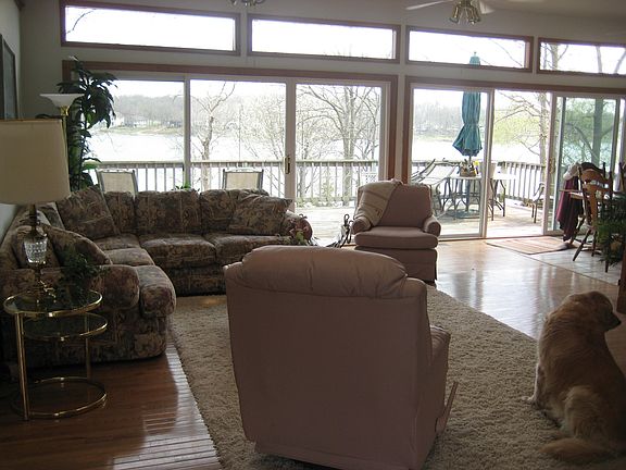 Beautiful view and sloping lot! Updated 4 bedroom, 3 bath open concept home with wall of windows overlooking lake. Two Bedrooms, 2 baths on first floor with finished, tiled lower level. Two additional bedrooms and 1 bath on this walk-out lower level. This home is furnished. Possible summer lease only