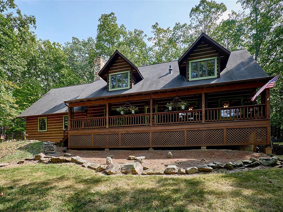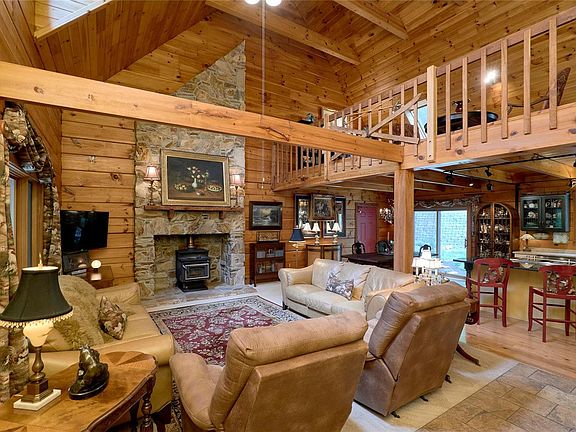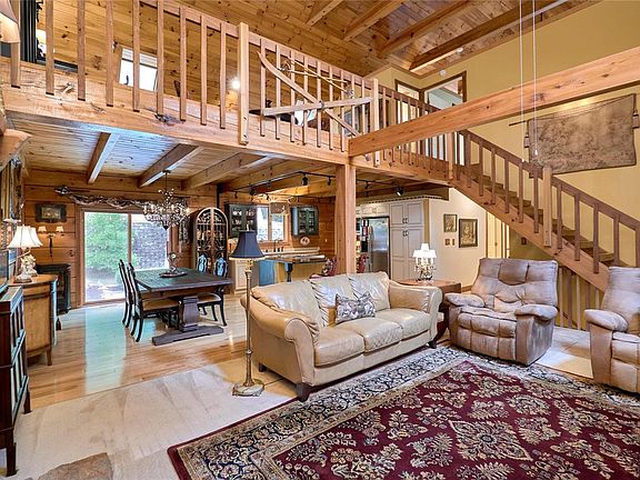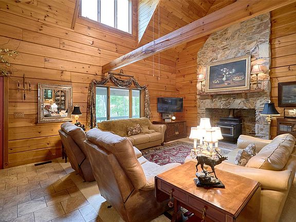 Once you enter this impressive & distinctive Log Home, you will never want to leave. It feels like a vacation home in the mountains! Soaring 27ft. ceilings in the open beamed Great Room make you pause to enjoy the beauty & warmth you see & feel. Nestled in Wildwood, this 5 bedroom home has 2 full/2 half baths. It sits on 3.55 wooded acres in renowned Rockwood School District. Expansive wolmanized red cedar front porch beckons you & your guests to sit & appreciate the tree-lined yard+flowering bushes. Amazing craftsmanship abounds with log-on-log construction of solid white pine. Every piece of wood was hand-stained. Handpicked Walnut was used on the stairs & railings which lead you to a spacious Loft Area (overlooks the Great Room) & Master Suite. The fireplace is a stunning focal point & its woodstove keeps you warm & toasty. The kitchen is a Chef's delight with large center island, custom cabinetry & stainless appliances. Terrific walk-out lower level. Be ready to fall in love!