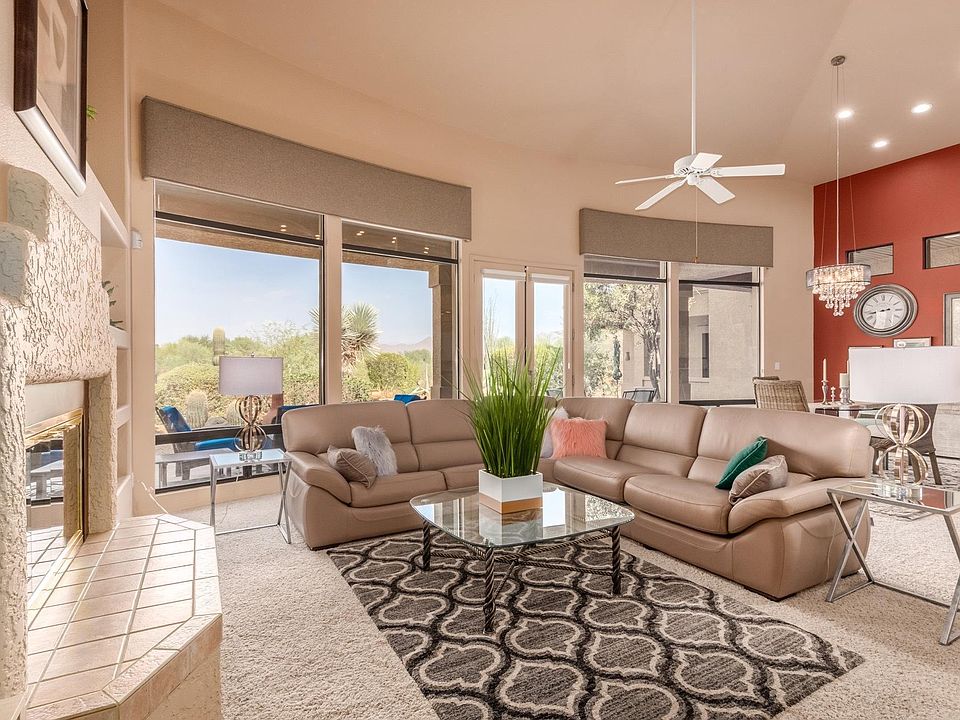 Gorgeous 3 bed or a den 2 bath Townhouse located in the active adult community of Tonto Verde. Enter to vaulted ceilings, soft color palette formal living & dining with a cozy fireplace, built-in niches & amazing views through the large picture windows. The open concept of the room is a perfect entertaining space! The amazing kitchen has two-toned cabinets, beautiful granite counters, island with an electric cook top, wall mount oven & microwave & breakfast bar seating and a walk-in pantry. The master suite has double doors, sitting area & a full bath that includes a split double vanity, soaking tub, separate step-in shower & a walk-in closet. Generous sized secondary bedrooms. Large laundry. Covered patio has amazing mountain & 10th fairway views! Many community amenities.