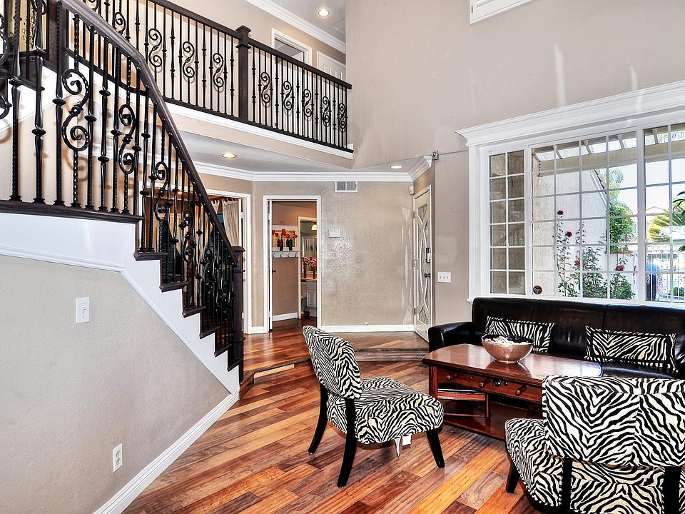 Charming 4 bedroom, 3 bath, home in a very desirable Fountain Valley location. FIRST FLOOR BEDROOM and FULL BATH. Located on a quiet, treelined Cul-De-Sac, next to brand new multimillions homes with brand new playground, Moiola park, with views backing to Smith's Organic Farm. Restaurants, Supermarkets, shoppings are across the street. This single-family home has a beautiful paver Courtyard Entry & boasts immaculate upgrades throughout. The home shows clean, airy and bright, with open-floor plan. Enter into a formal living room followed by a dining room that is a lovely retreat for dinner parties. Relax in the generous family room w/built-in surround sound, breakfast nook w/built-in bench seating/storage, laundry room, main floor bedroom & Full Bath. One will also find beautifully remodeled kitchen w/Granite countertop, custom cabinetry w/ soft-close drawers, walk-in pantry & stainless steel appliances. You'll love the private backyard w/built-in Turbo Barbeque & covered patio, perfect for entertaining. Master Suite w/master bath and 2 extra large bedrooms w/ Jack & Jill bath located upstairs. Additionally: Newer Central A/C, Camera Security System, hardwood flooring, dual pane windows & doors, crown molding, plantation shutters, & home theatre wirings. Great schools, nearby park, close to FWY, shopping & minutes from the beach. ** Please note since the pictures have been taken, the house has been repainted entirely in Swiss Coffee color (off-white). The furnitures are staging, not come with the house. One year contract term.