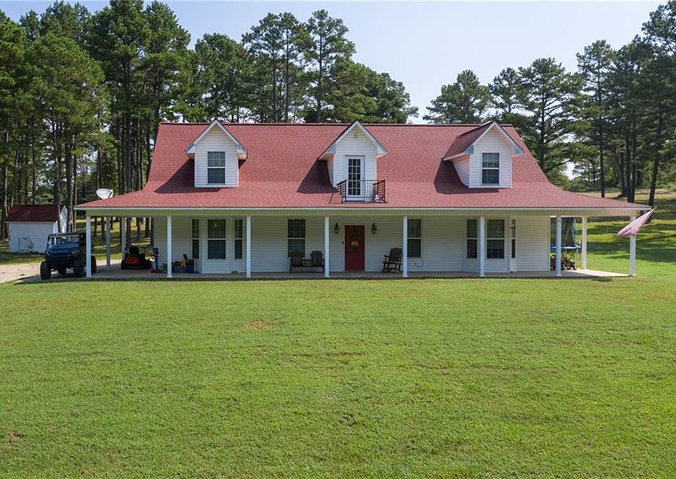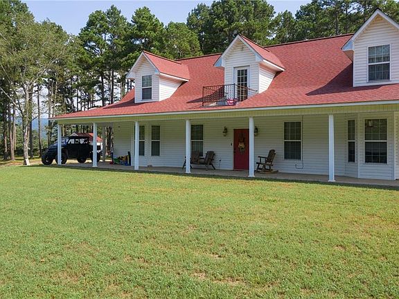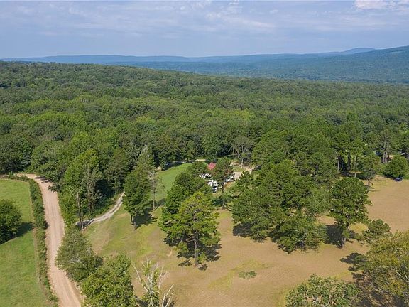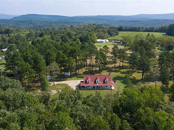 Spacious home w/wrap around porch, gorgeous tall pine trees & a small creek on the front of the property all located on apprx 13 acres near the Ozark National Forest and only a few minutes to the Mulberry River. This 3504 heated sf (according to tax records) has 2 bdrs & 2 baths downstairs and 1 huge bedroom & bath upstairs! Detached 1 car garage, storage building & storm cellar also on the property. 1 year home warranty from AHS is included with purchase.