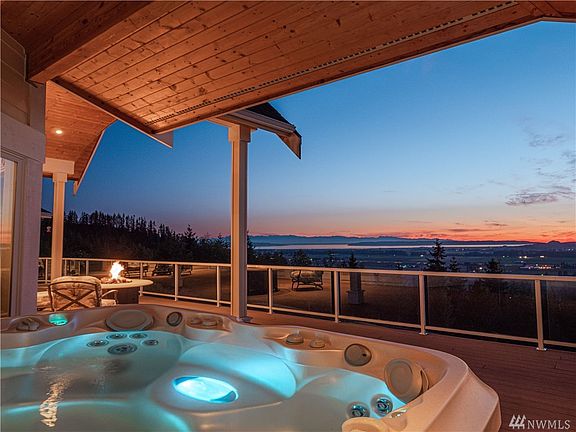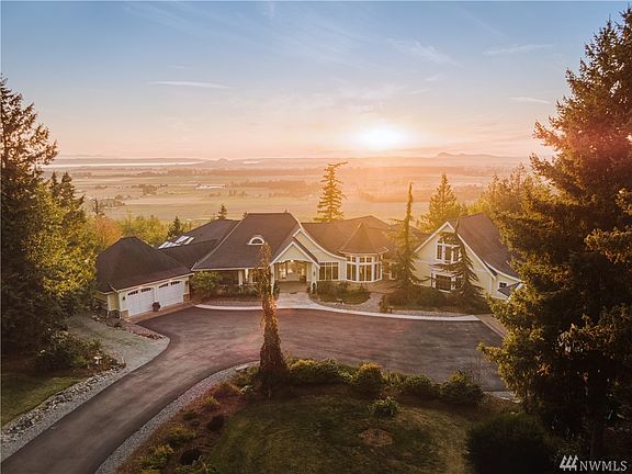Impressive hilltop estate on Scott Mountain overlooking the Skagit Valley, Olympic Mountains, and San Juan Islands. This Tuscan character home was designed for entertaining w/multiple living spaces that would share the beauty of this incredible area. The road winds down to a grand entry opening up to provide many parking spaces. 5 covered parking spots w/abundant work space. Large elevated deck with hot tub. Expansive grounds. Patio w/utilities available. Greenhouse. Must Watch Video!!