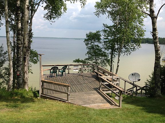 BIG MANISTIQUE LAKE Expansive Views!Lovely remodeled 2 bedroom, 1 bath home with beautiful tongue and groove throughout and in floor heating. This maintenance free home is ready for new owners. Pack your bags and move right in as this is being sold furnished! Not only do you have a home, but a darling 2 bedroom summer cottage for any guests and this too comes furnished. Excellent deck that overlooks the lake with steps leading to the sandy beach and dock. Must see home to appreciate all the beauty. #4784