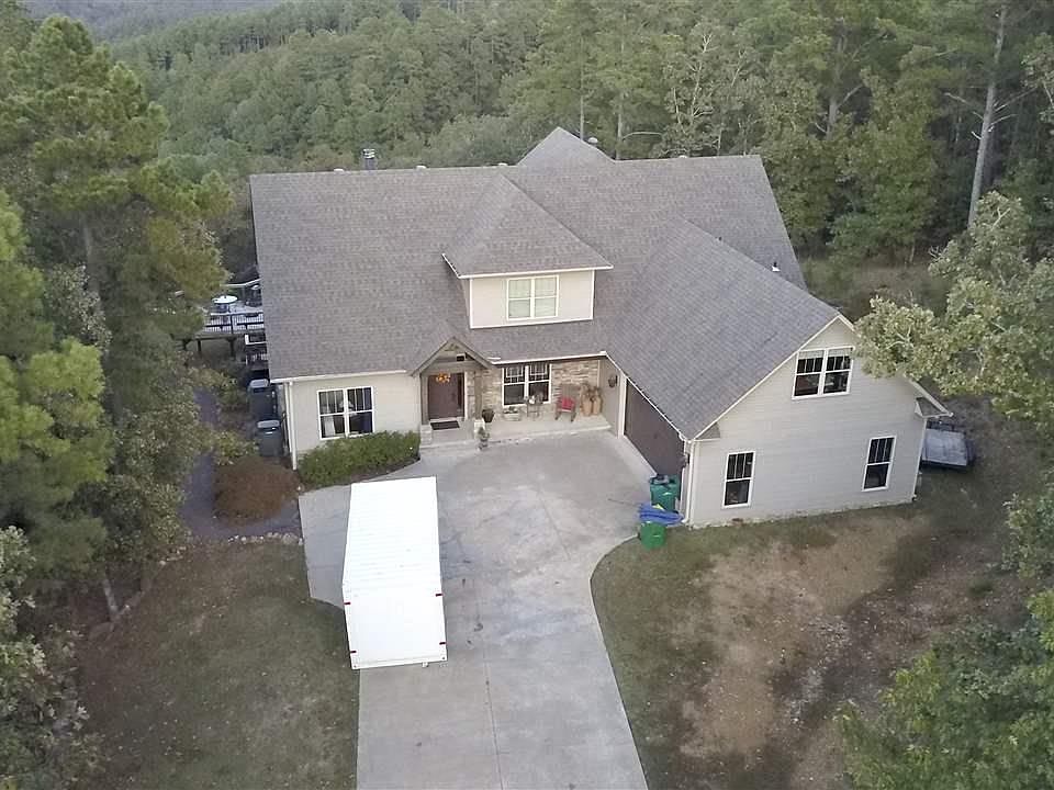 Mountain top views with 10 acres of paradise. This beautiful home has no shortage of living space nor windows to bring in the 10.74 acres that come with it. 5 bedrooms and 3 full baths. Master on main level. The back deck is oversized with vista views lookinig north over the Arkansas River Valley. The house sits toward the end of quiet and peaceful Dwight Little Road. 20 minutes to the Chenal Wal Mart. The living area features an oversized fireplace to keep you warm while taking in the view.