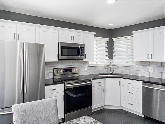 Water viewGranite countertopsSpacious back patioUndermount sinkStylish tile backsplashExterior storageTwo covered parking spaces