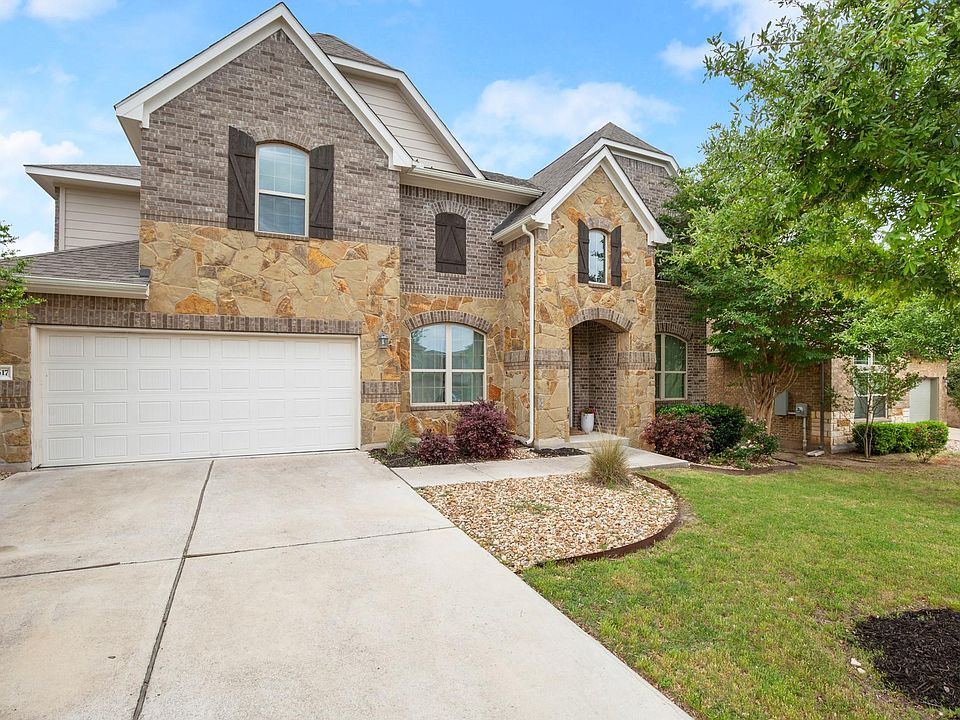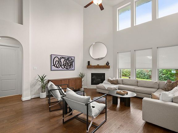 Welcome to 18617 Rio Chama Ln, a stunning Hill Country retreat in the coveted Sweetwater community near Lakeway. This beautifully styled home blends classic elegance with modern comforts and is zoned to the prestigious Lake Travis ISD. Striking curb appealwith stone and brick accentssets the tone for the well-appointed interior.The 4-bedroom, 3.5-bath layout offers a primary suite on the main level featuring a spa-like soaking tub, walk-in shower, and a large closet. The heart of the home is a gorgeous kitchen boasting white cabinetry, granite counters, subway tile backsplash, stainless steel appliances, and a storage-rich island with breakfast bar seating. A butlers pantry with a beverage fridge connects the kitchen to the formal dining room, while a breakfast nook offers a relaxed space for everyday meals.Soaring ceilings and large picture windows fill the living room with natural light, and a cozy gas fireplace adds warmth and charmperfect for relaxing evenings. Custom shades on the lower windows provide added privacy. A dedicated office and a convenient half bath round out the main level.Upstairs, you'll find three spacious guest rooms, two full bathrooms, and a game room, all with a fun and thoughtfully designed aesthetic. Beautiful wood flooring flows throughout the main level and continues upstairs into game room and can be found in all of the bedrooms.Step outside to a covered patio perfect for entertaining, complete with a cedar soffit ceiling and a generous backyard ready to enjoy. Residents have access to Sweetwaters resort-style amenities, including pools, a fitness center, clubhouse, tennis courts, and miles of scenic trails. With The Hill Country Galleria nearby, access to Lake Travis, and just 30 minutes to Downtown Austin, this home offers the perfect balance of natural beauty and city convenience.