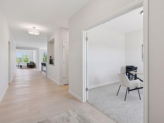 Welcome to the Mulberry floor plan. A luxury twin home that offers a well-designed layout, providing ample space for comfortable living. This home features 5 bedrooms, Four bathrooms, and a two-car garage. Main Floor Layout: * 2-Story Great Room: The spacious great room is perfect for family gatherings and entertaining, featuring an open layout that flows seamlessly into the dining area and kitchen. * Kitchen: The modern kitchen is equipped with a large island, plenty of counter space, a pantry, and high-quality appliances. * Dining Area: Adjacent to the kitchen, the dining area provides a cozy space for meals and socializing. * Primary Bedroom: The primary bedroom on the main floor includes an en-suite bathroom with dual sinks, a soaking tub, a separate shower, and a walk-in closet, offering a private retreat for homeowners. * Mud Room: The mud room, located near the garage entry, provides extra storage and organization space. * Two-Car Garage: The attached garage offers ample space for vehicles and additional storage. Second Floor Layout: * Bedrooms 2, 3, and 4: 3 additional bedrooms on the second floor are perfect for family members or guests, each offering generous closet space. * Laundry Room: Conveniently located on the second floor, the laundry room makes laundry tasks easy and efficient. * Full Baths: Two full bathrooms on the second floor ensure comfort and convenience for family and guests. Lower Level Layout: * Family Room: The finished family room in the lower level is ideal for entertainment, games, or relaxation. * Bedroom 5: An additional bedroom on the lower level provides extra space for guests or family members. * Full Bath: A full bathroom on the lower level ensures convenience for lower level occupants. * Mechanical Room: The mechanical room offers space for utilities and additional storage. * Storage Area: Ample storage space is available in the lower level for all your belongings. The Mulberry floor plan combines elegant living spaces with practical design elements, ensuring a comfortable and stylish home for families. This layout is designed to cater to modern living needs, offering a perfect blend of luxury and functionality.