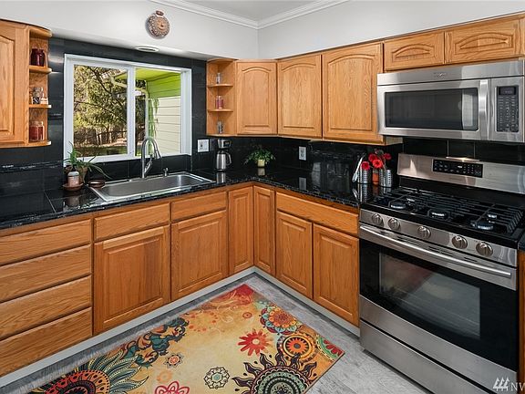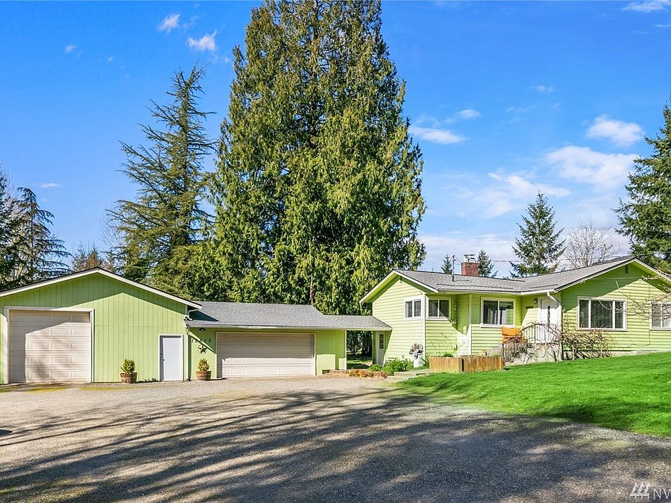 Remodeled home in park-like setting with view of the Issaquah Alps. Retaining the charm of 1930's farmhouse with updates of modern conveniences. Kitchen with stainless steel appliances, 5 burner gas cook top, granite counters, and durable wood planed ceramic floors. Master bedroom with private patio, designer tiled shower in bath, and double closets. Basement rec room and extra finished room. Living room with river rock fireplace. Covered patio for outdoor relaxation, gazebo, koi pond. Two car garage 23x23 ft. Shop/garage 25x36 ft with 10 ft drive through doors. 24x16 ft shed and two 10x10 ft sheds. Fruit trees, ferns, and a forest-like setting.