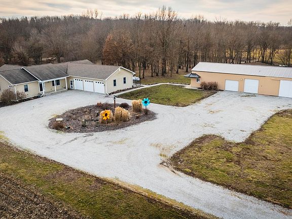 Tucked away on a quiet county road sits this gorgeous 5,256 livable square feet ranch home, with a three-car attached garage. The heart of this magnificent home is its spacious kitchen, which boasts top-quality stainless-steel appliances, modern cabinetry, and elegant granite countertops. The ample space allows for seamless meal preparation and entertainment. As you make your way from the kitchen, you will come to the formal dining room and the very spacious living room. You can walk directly from the living room into the heated four-season room with a spectacular view of the entire wooded back yard. Also, off the living room, you enter the primary bedroom, which boasts a large walk-in closet with an en-suite bathroom with a garden tub. As you make your way back through the home and down the hall, you will come to two bedrooms and a very roomy laundry room. From the hallway, you will enter the stairs leading to a beautiful, finished basement with a wet bar, two bonus bedrooms and a full bath. The finished basement is another great area the current owners use to entertain friends and family. This home also comes with a 20kw Briggs and Stratton whole home generator. Beyond the luxurious interior features of the home, the property not only provides a peaceful retreat but also offers unlimited recreational opportunities. To add to the property's amenities, a 32' x 88' outbuilding is partially finished with a concrete floor, radiant heat, and bathroom. Call today for a tour.