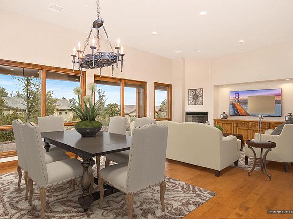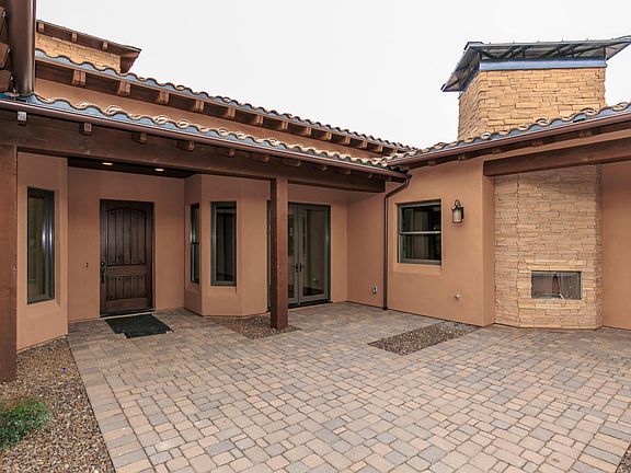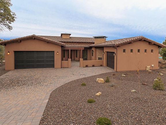 STUNNING TERRITORIAL HOME. Custom built high quality one level home for sale in Enchanted Canyon, Prescott, AZ on large level lot with evergreens and boulders on cul-de-sac. Great room with stacked slate gas fireplace, 3 bedroom, 2.5 bath, den/office, gourmet kitchen with granite counters, high island & breakfast bar, stainless KitchenAid Professional Series appliances, hardwood floors. Large laundry room with storage galore, 2 car garage with an additional single car garage with massive workshop area. Dual zone HVAC. Professional interior design, neutral paint scheme, high end fixtures and hardware. Paver patios and courtyard w/ fp, city services. Some photos depict virtual staging