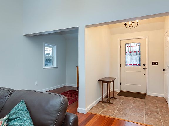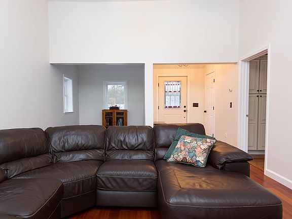 Open floor plan home on nearly 2 acres with views! Vaulted ceilings, skylights, & sliding glass doors makes rooms spacious & bright. Main living area boasts an updated eat-in kitchen with quartz counters, large center island, & soft-close cabinets/drawers. Perfect layout for entertaining--congregate in main room, adjoining family room or onto the expansive, part-covered deck. Master bedroom has en-suite full bathroom. Large mud room with laundry off the 2.5-car garage all steps away from bedrooms. Radiant floor heat keeps feet warm, & makes the sizable basement a functional workshop or storage.