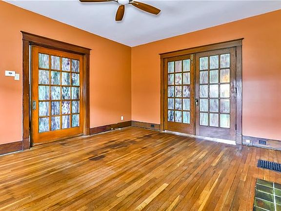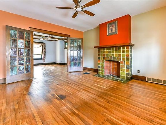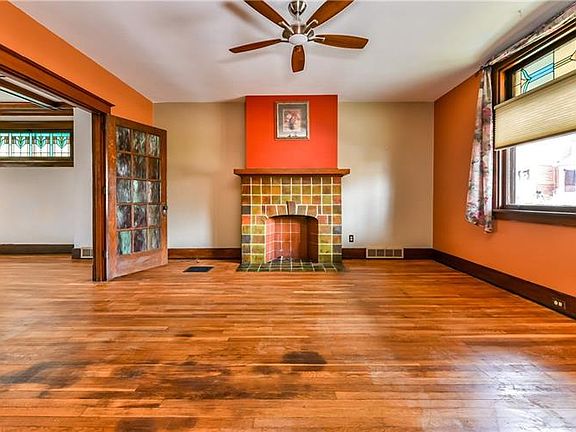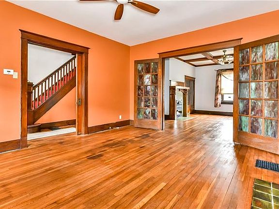 Wonderful Craftsman details through out this home. Beautiful stain glass Arts and Crafts windows through out the first floor. French style pocket doors in the living and dining rooms with color pane glass. Oak floors in need of sanding on the fisrt floor and second floor has beautiful refinished pine. Updated kitchen with newer stainless steel appliances. Full bath on the first floor. Detached garage and off street parking space. Deck off the kitchen. There is a large low ceiling walk up attic for storage. Close to all public transportation. Not far from the Highland Park bridge and zoo. Bicycle ride to Lawrenceville.