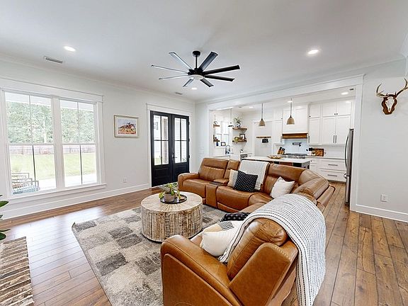 Welcome to your dream home situated in the Rehobeth school zone. This custom-built 3-bedroom, 2.5-bathroom home boasts an open-concept living area that seamlessly combines classic design with modern amenities. The house features 10 ft. ceilings, 8 ft. doors, 7 ft. windows, custom trim, and crown molding throughout. Step into the bright and welcoming living room, where a gas fireplace and built-in shelving create a cozy atmosphere for gatherings. The kitchen is equipped with a professional grade 36” gas stove and convection oven, professional grade dishwasher, marble countertops, a pot filler, and a spacious walk-in pantry with an additional beverage cooler. The island and separate dining room provide an ideal setting for hosting dinners and entertaining. Adjacent to the kitchen is a half bath for guests. The generous master suite includes a walk-in rainfall shower, separate vanities, a soaking tub, and a roomy walk-in closet with custom shelving and a safe. The other two bedrooms offer walk-in closets with custom shelving and share a sizable Jack-n-Jill bathroom with ample storage. Outside, relax on the large back porch overlooking the private fenced yard and a 24x24 shop with a roll-up door and a 24x24 concrete pad.