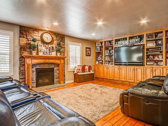This beautiful home is amazing! An open floor plan perfect for entertaining, close walking distance to schools, parks, and shopping. Attention has been paid to every detail of this home. Enjoy the theater room and game room in the basement, relax outside in the beautifully landscaped yard, or hang out in the great sized kitchen and family room. This home has it all, granite counters everywhere, solid hardwood flooring, custom tile work, and plantation shutters throughout the entire home. The great room has incredible built-in custom cabinetry, a fireplace with floor to ceiling stone work, and an in-wall surround sound system. The kitchen boasts a huge center island with professional grade stainless steel appliances and built-in double ovens, as well as a beautiful glass and stone backsplash. In the fully finished basement you have an incredible theater room with 120" screen, HD projector and in-wall 7.2 surround sound, a second kitchen with all stainless steel appliances, a game room, a kids cave with a chalk board wall, and a giant cold storage room. The master bedroom is a true sanctuary with a sitting area, coffered ceiling, and a spa like master bath with dual vanities and a huge separate jetted tub. The four car garage with finished, painted walls and epoxy coated floors gives you ample space to store your toys. Situated on a south facing lot at the back of a quiet cul-de-sac, this home has a professionally landscaped yard that both you and your kids will love. The backyard has a hot tub, huge back patios, cobble stone pathways leading to a fire pit area and a gazebo, and a large sport court. In front you have a large wrap around porch and a custom built, pondless waterfall that is simply beautiful. The attention paid to every detail of this home surely sets it apart from the rest. For more information call Jake at 801-309-6496 or 801-872-8556.