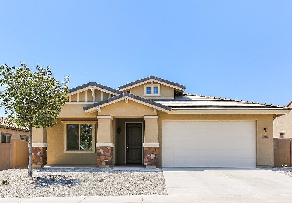 Please note, our homes are available on a first-come, first-serve basis and are not reserved until the lease is signed by all applicants and security deposits are collected. This home features Progress Smart Home - Progress Residential's smart home app, which allows you to control the home securely from any of your devices. Apply to lease this home by October 16, 2024 and receive $1000 off your first full month's rent. Want to tour on your own? Click the "Self Tour" button on this home's RentProgress. This inviting stucco rental home in Buckeye features attractive stone columns and an attached two-car garage. The two-story house includes three bedrooms and two bathrooms. When you step inside, the vast living room is sure to wow you. Its light walls and neutral plank flooring make decorating easy. Staggered oak cabinets, dark countertops, and stainless-steel appliances add style and convenience to the kitchen. The big master bedroom offers a walk-in closet and a high ceiling with a fan. You'll love retreating to the en suite bath with its twin-sink vanity, garden tub, and walk-in shower. A covered patio and fenced-in backyard offer a private place to relax. Call today to schedule a tour.