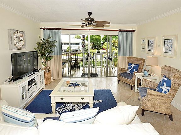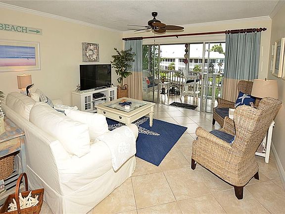 Lovely sunny second floor unit. Views down the canal to the river. End unit with extra windows. Extensively updated. Tile in kitchen and living area. Waterproof wood plank vinyl in bedrooms. Newer kitchen cabinets and granite countertops. Oversized master shower. Large lanai, porch. A must see. This unit does not have a boat slip but they can be purchased or leased if you have a boat. Trucks allowed with certain restrictions. Current owner is renovating his new purchase and cannot close until early June