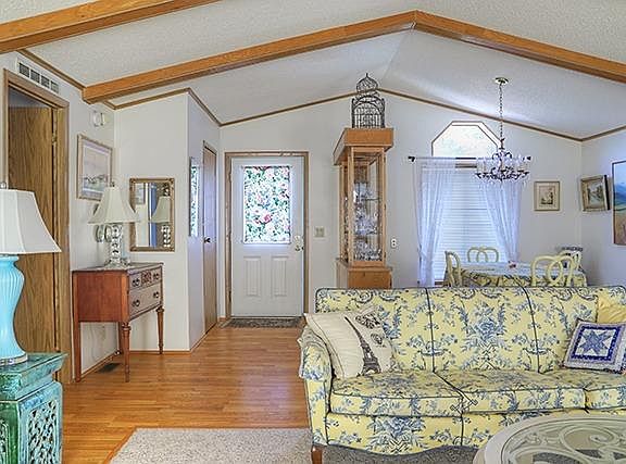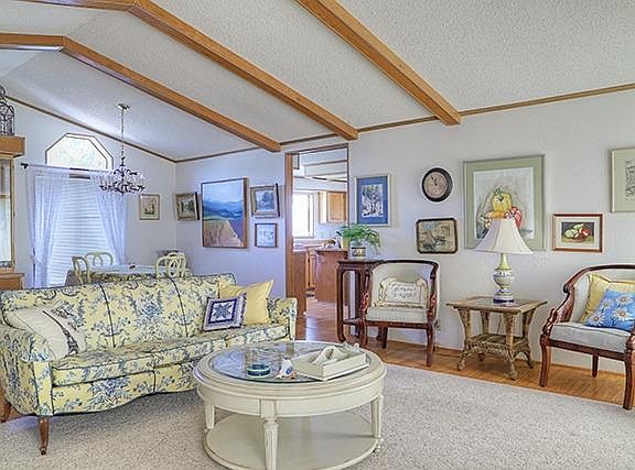 Perhaps ordinary on the outside, this 1458 sq/ft home is delightfully warm and inviting on the inside. With vaulted ceilings, beam ceilings, wood floors....there's plenty to love. The rooms are spacious, the kitchen features plenty of storage and an island for casual meals. The laundry room is oversized with a handy nook for sewing or craft work, even a home office. Out back is a lovely patio, with a covered area for relaxing on warm evenings. The single car garage is finished with a 6'x10' workshop. Alongside the garage are raised garden beds just waiting for you best homegrown effort. Allen Creek Estates is a Planned Unit Development for those over 55, and you own the land (not a park) and it's conveniently located near Three Rivers Hospital and many medical offices. HOA fees are $75 monthly and include use of a community clubhouse.