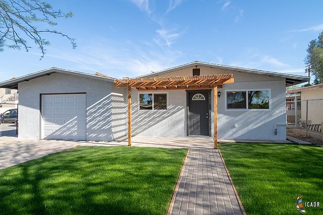 BRAND NEW HOME!! Welcome to 1862 Rio Vista in Seeley. The home is literally brand new from the foundation up! This 3 bedroom, 2 bath home features tile flooring in the kitchen and bathrooms, wood laminate flooring in the living room/hallways and carpet in the bedrooms. The master bedroom features 2 custom barnyard doors, and a custom tiled shower. Other ALL NEW property features include, LED lighting, ceiling fans, windows, stucco, roof, AC, cabinets, front covered patio and custom wood accents in both bathrooms. The home sits on a large 7000 sf lot with alley access, front landscape with irrigation and a 1 car attached garage! There is truly nothing else like this in the area