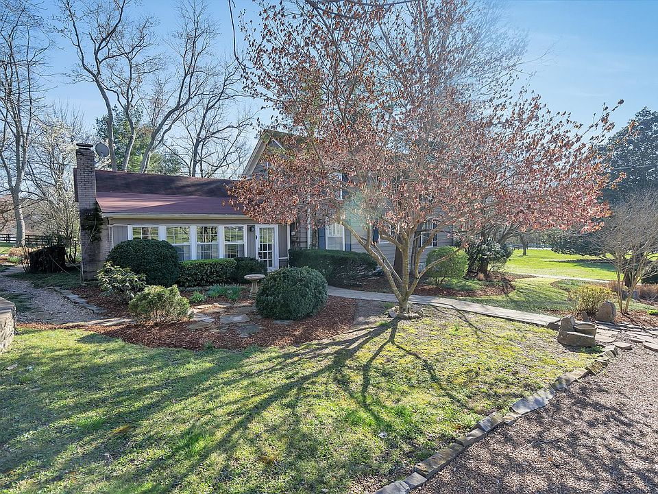 Charming farmhouse beloved for 27 years @6 acres less than 7 min from Cool Springs. 2 masters on main, all appliances included. Cosmetic updating needed. Historic magnolia, recurring flowers, and trees abound. Detached 600 sf studio/hobby space, separate workshop and attached small barn. Truly mini-farm living moments to shopping/dining.