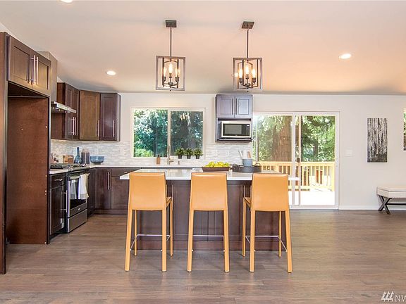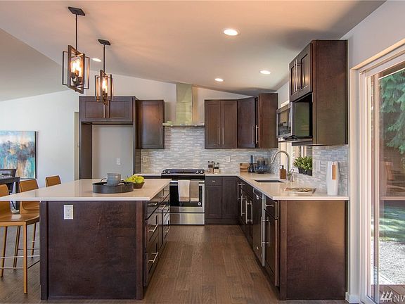 Stunning new custom single story mid-century modern! This Edmonds home is on a quite, private 1/2 acre fully landscaped lot w/ peek-a-boo view of the sound from your master bedroom deck. Open floor plan with vaulted ceilings, gas fireplace with floor to ceiling tile. New kitchen w/ quartz counter, large island and new SS appliances. Master bedroom suite w/ walk-in closet, large shower w/modern rain shower & jets, double floating vanity. New everything including plumbing, electrical, gas and heat