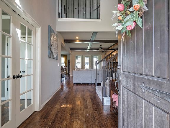 Stunning kitchen w/granite opens to living w/gorgeous beamed ceiling & corner fireplace. Study, master plus 2nd bedroom down. Huge game room up centered between 2 addtl bedrooms. Walk-out attic/expansion room. Cozy covered patio & fully fenced backyard!