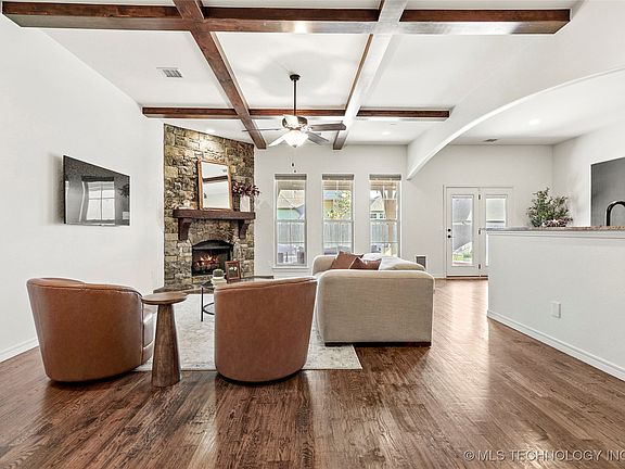 NEW PRICE!!! This home is packed with features and ready for modern living! This house has bedroom options. It lives like a one-story but includes a spacious bonus room or 4th bedroom upstairs + a HUGE floored attic that is READY for your finishing touches. A welcoming flex room with French doors and a 2nd cozy corner fireplace sits just off the entry, ideal for a home office, formal dining, or playroom. The charming great room features a cross-beamed ceiling and a striking stone fireplace, seamlessly connecting to the open kitchen and dining area. The kitchen is a dream for home chefs, offering custom cabinetry, updated quartz countertops, updated appliances and instant hot water at the faucet. The pantry has been wired with outlets to accommodate small appliances to eliminate counter clutter.