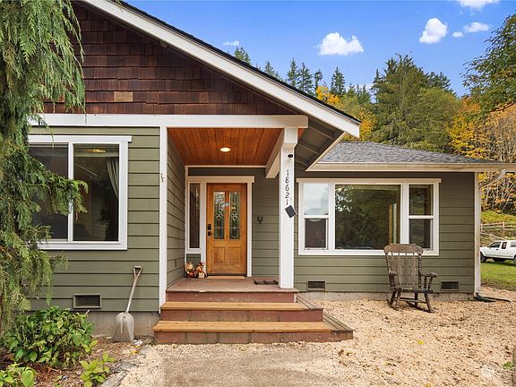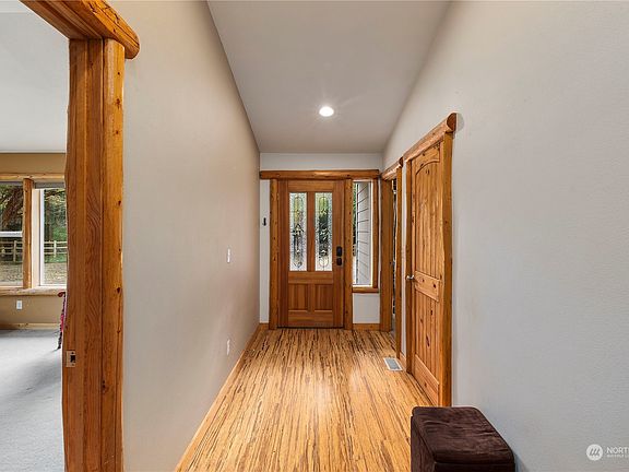 READY TO MOVE IN!!Unique stunning custom built rambler on 5 acres. Great opportunity to purchase next door 4+ acre lot as well. Secluded country living just minutes to town. Open floor plan features vaulted great room with wood burning fireplace, new carpet just installed Nov 29,23, New Roof installed Dec 29 and, hand milled pine trim around all the windows & doors. Beautiful kitchen w/ quartz counters, tons of cabinets, a walk in pantry & stainless steel appliances. Spacious master suite w/HUGE 5 piece master bath w/jetted tub & Lg. walk-in closet. Park like property provides privacy, trails, & fire pit. Mountain views & RV parking! Septic pumped and inspected Dec 1st, 23 and available in Snohomish county website. You Must See!!