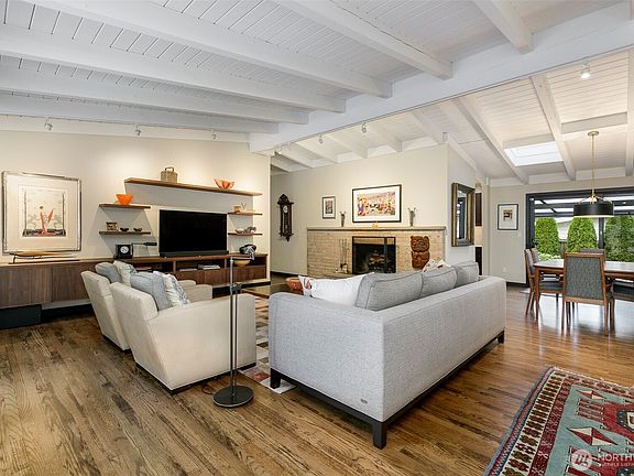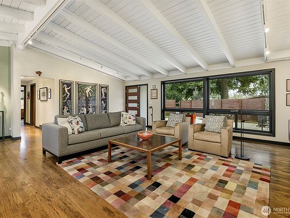 This stunning Mid-Century Modern rambler in the heart Seaview blends classic design with modern updates. The living spaces boast vaulted ceilings, an open floor plan, hardwood floors, and abundant natural light. The chef’s kitchen features high-end Miele appliances, and the family room is wired for surround sound. The primary bedroom includes an en-suite bath with double sinks and a level-entry shower. Nearby there are two additional bedrooms and a full bath. The combination pantry/laundry room are located off the spacious two-car garage. The west-facing backyard features a large, covered deck, garden shed, and spa, making this home a true gem. Located in the Edmonds School District near parks and transit. Pre-inspected and move-in ready!