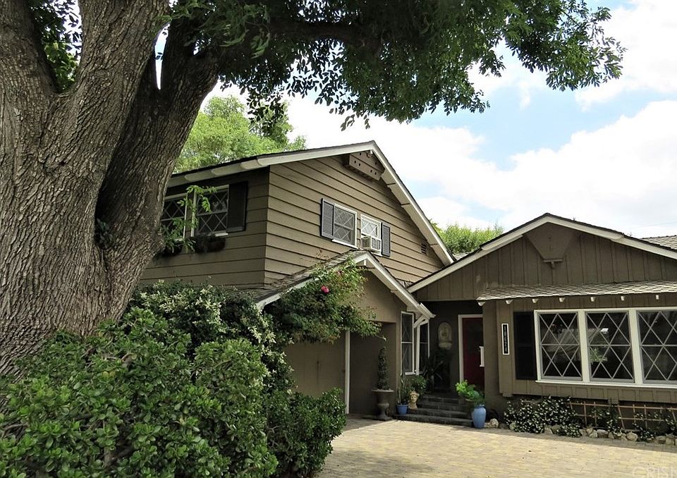 Style and flair describes this 2,011 sq. ft. home on a quiet cul-de-sac street. Pavers lead up to the front door. Inside you'll find a very open floor plan with hardwood floors. Picture a crackling fire in the stone fireplace where a window seat adds charm to the living room. Sitting in the breakfast nook enjoying a cup of tea is always enjoyable with the sun shining in through the garden windows. Rounding out the kitchen are the stainless appliances, custom cabinetry, Corian counters & a double sink as well as a "designer's" view of the family room. A copper counter & a window with a view adorn the laundry room just off the kitchen. The family room is an extension of the living room with sliding glass doors leading out to the backyard. The formal dining room with its decorative ceiling also serves as the gateway to the upstairs. Also downstairs is a full bath, a bedroom & the master suite with an updated ¾ bath. Upstairs a ¾ bath serves two more spacious bedrooms. Sitting on a 8,400 sq. ft. lot, creativity is evident in every square foot. The grounds both front & back have a sometimes wild & sometimes deliberate but always beautiful look about it. So many lovely surprises. Just outside the family room is a patio that has an atmosphere of intimacy to it. Then there is the pergola with the branches of climbing white roses wrapped around the columns transporting you to an English garden. Yet another pergola at pool side & now you're somewhere in the Mediterranean.