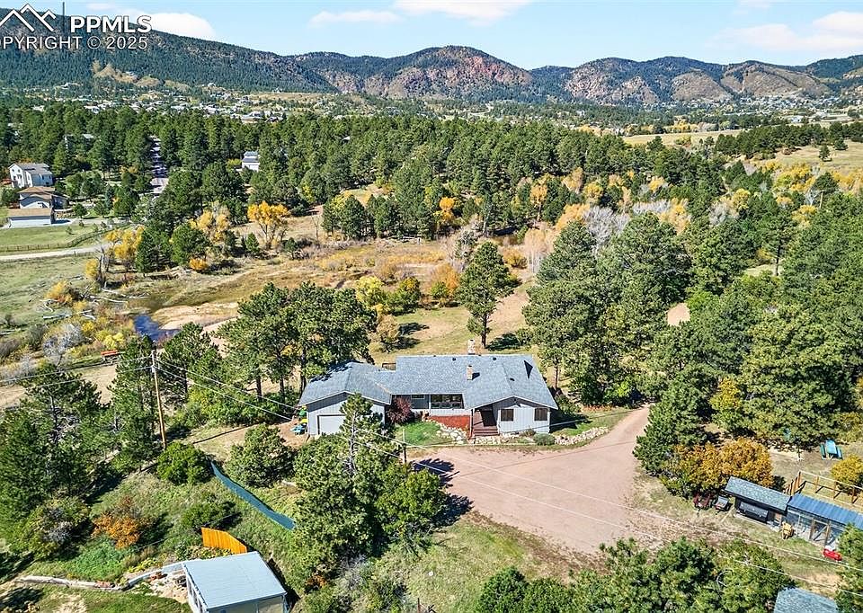 Welcome to your Colorado mountain haven on 1.45 acres at 18625 Rockbrook Rd in picturesque Palmer Lake. Nestled among mature pine trees and offering sweeping views of the Front Range, this ranch-style single family home blends rustic charm with spacious living. Built in 1974, the home offers 2,600 sq ft of living space with 4 bedrooms, 4 bathrooms, and a finished basement with two lower-level walkouts - including one with convenient drive-up access. On the mainfloor, enjoy expansive, open living areas warmed by a wood burning fireplace, abundant natural light, and huge windows offering walkout access to the second level deck - perfect for morning coffee, evening stargazing, observing the neighbor’s horses, or hosting a party to watch the Palmer Lake 4th of July fireworks show. The attached garage and two-story garage space accommodate vehicles and offers bonus storage space for all your gear. Outside, the generous acreage offers privacy, space for gardens, chickens, or other outdoor pursuits. Located in Lewis-Palmer School District 38, this home places you just minutes from small-town conveniences yet within reach of natural recreation. With its tranquil setting, generous lot, and timeless appeal, this home is ideal for those seeking Colorado countryside living with room to roam. Whether as your primary home or a weekend retreat, it’s a rare offering in the Palmer Lake area.