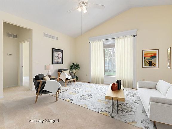 Simply the best! In addition to Asbury Villa's resort style amenities, you'll enjoy a covered porch overlooking the treed green space with walking trail! Sun-filled rooms welcome you with the comfort of primary bedroom room, laundry, kitchen, dining and living room on main level. Stainless appliances with abundant counter space for chef's delight or entertaining. Bonus bar for casual meals, in additional to dining room which overlooks the covered patio to green space. Basement offers spacious rec room, storage, full bath and second bedroom with a walk-in basement. Two car garage with bonus parking for guest. Time to relax and enjoy each day with these neighborhood amenities to take care of the day to day maintenance. Take in the summer with pools, club house and walking trail. Convenient access to restaurants and highway.
