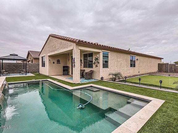 BEAUTIFUL, MOVE IN READY, PRICED TO SELL! This 3 Bedrooom, 2.5 Bathroom home built in 2020 with newly remodeled guest bathroom, beautiful pool with water feature, putting green, pergola, RV Gate and much more is the perfect home for any buyer. With an assumable solar lease at $166 a month, the average monthly electric bill comes in around $45. Assumable VA Loan with proper qualifications.