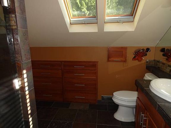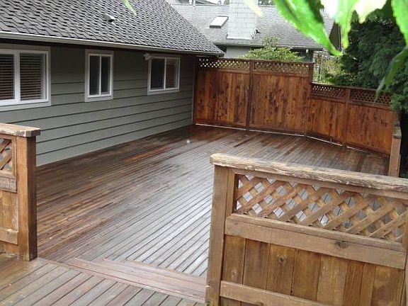 Avail Sept 1st. This beautiful spacious 4 bedroom 2 bath house for rent sits on a quiet street right up the hill from downtown Bothell and down the street from Bothell High School which is a part of the award winning Northshore School District. Beautiful flower gardens and tall trees surround the front yard and fenced backyard, Landscaping included in rent! Large two level back deck boasts an outdoor gas fireplace and a great space for BBQ's. The lower floor offers 3 generous sized bedrooms, a full bath, washer and dryer and a large bright living room & dining room with sunset views. The kitchen boasts hardwood floors, black granite countertops, clean stainless steel appliances including a gas stove and a bright large window above the double sink overlooking the beautiful private backyard! Upstairs, the master suite is spacious and unique, offering its own sitting area with a small warm gas fireplace, numerous skylights allowing for natural lighting, a full bathroom with stone tile accents and a double headed shower with room for two. Hot water on demand. Central heating and A/C. No Pets