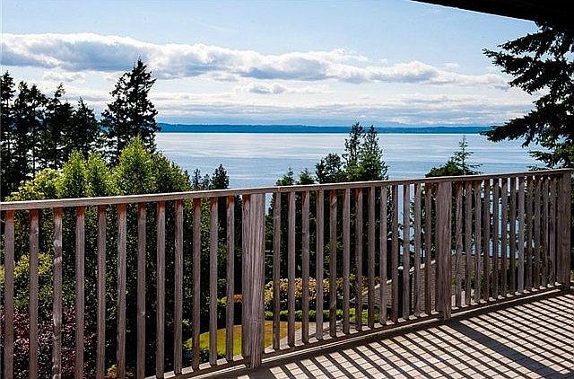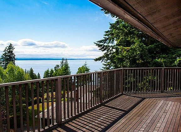 Spectacular Puget Sound and sunset views from almost every room !!! Spacious home features good bones and structure, hardwood floors thru out, brand new roof, wood burning fireplace, formal dining room and eating bar in kitchen. Two entertainment size ironwood decks. Lower level cozy master suite with en-suite bath, large closet area & opens onto view deck. 2 additional bedrooms with built-in shelves also on lower level. Huge walk-in storage under garage. Detached indoor pool house.