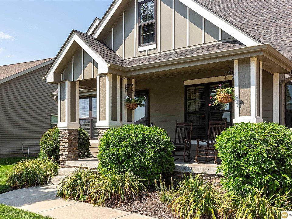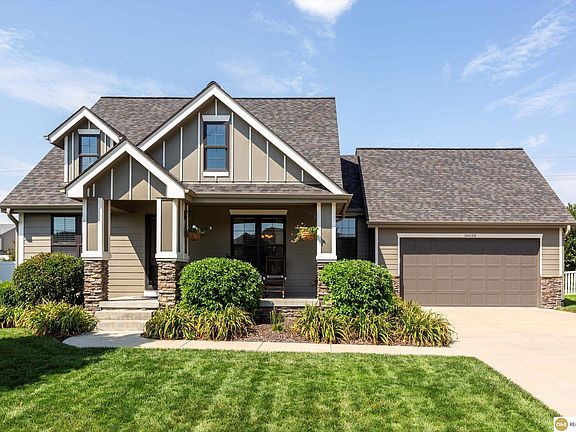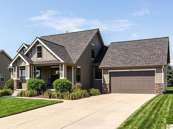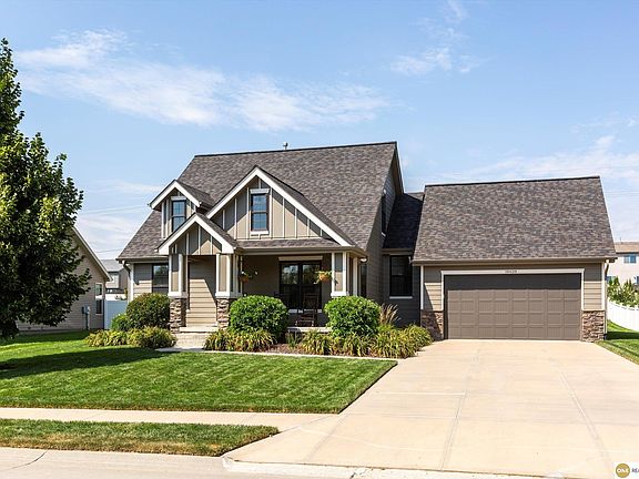 Tour this stunning 1.5-story home in the sought-after Sugar Creek neighborhood. This meticulously maintained PRE-INSPECTED home features a spacious main floor with a cozy electric fireplace in the open living area, leading to the dining room and kitchen both boasting beautiful wood floors. The kitchen has granite countertops, a large pantry, and an island with seating. The primary suite on the main floor includes a private ensuite with double sinks, a soaking tub, and a separate shower. Upstairs, you'll find two additional bedrooms, a full bath with double sinks, and a dedicated laundry area. The basement is an open canvas, ready for your personal touch with an egress window for a future fourth bedroom and is roughed in for an additional bathroom. Located in the Millard School District, this home is just blocks from a park and trails and is on a loop street. The backyard is secluded and includes a Weber natural gas grill, perfect for entertaining.