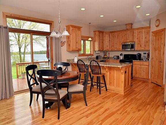 Fantastic Lake Belle Taine two story home. The home offers 4 bedrooms and 4 updated bathrooms. Quality craftmanship throughout, featuring Alder wood work, custom cabinets, granite counters and top of the line appliances. Gorgeous two strory sunroom on the main level with huge windows! The spacious living room has a gas fireplace, hardwood floors and huge windows to enjoy the beautiful lake view. Main level is a great space for entertaining with the open feel. 3 bedrooms on the upper level including a master suite w/ a walk-in closet and a full bath with double sinks, a jetted tub and separate shower. Fully finished lower level with huge family room and 4th bedroom. Included is 341' of shared lake shore and a dock system with your own boat slip! Also included is a 1/5 interest in a 35' x 50' pole building for storage. One of a kind opportunity to own this meticulously maintained lakehome with beautiful and updated finishings throughout.