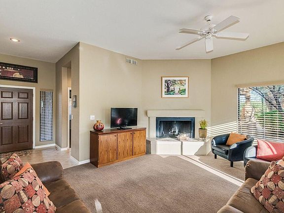 GREAT SNOWBIRD OR RENTAL UNIT. BOTH BATHS UPDATED IN 2019. KITCHEN WITH SLAB GRANITE, COUNTER WAS EXTENDED AND TURNED TO CREATE A BREAKFAST BAR, CABINETS STAINED DARKER WITH HARDWARE, NEWER DISHWASHER. GREAT ROOM WITH FIREPLACE, ADJACENT TO THE DINING AREA, HIGH CEILINGS, NEWER CARPET, DESIGNER PAINT, BLINDS, & CEILING FANS THROUGHOUT. DOUBLE DOORS LEAD TO THE MASTER BEDROOM WITH NIGHT STAND LIGHTS ATTACHED TO THE WALL, MASTER BATH WITH DOUBLE SINKS, SKY LIGHT, SHOWER & WALK IN CLOSET. GUEST BEDROOM WITH SKY LIGHT ADJACENT TO HALL BATH WITH TUB/SHOWER, & SKY LIGHT. LAUNDRY ROOM WITH WASHER, DRYER, & UPPER CABINETS. NEWER A/C, WATER HEATER, RE-CIRCULATION PUMP FOR INSTANT HOT WATER ANYWHERE IN THE UNIT. COVERED PATIO TWO CAR GARAGE.