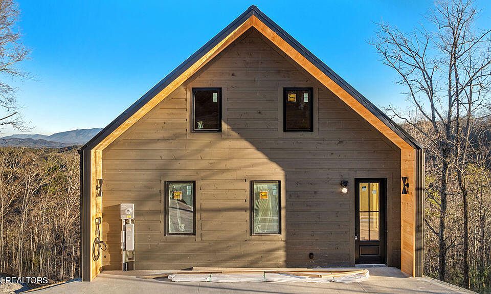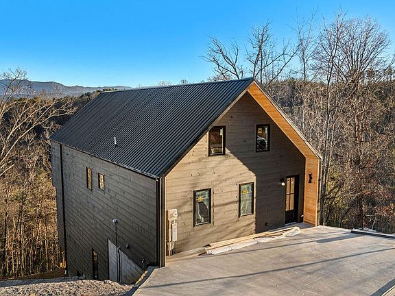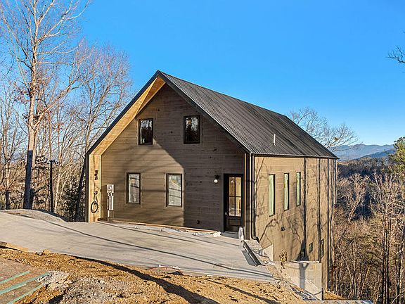 Experience modern mountain living in this newly constructed Scandinavian-inspired cabin, thoughtfully designed with clean lines, natural textures, and premium finishes throughout. Perfectly positioned to face the Smoky Mountains to the east, the home captures breathtaking sunrise views from every angle. A modern yet inviting atmosphere flows through the space, highlighted by vaulted ceilings on the main level, twelve-foot ceilings in the basement, and eight-foot interior and exterior doors that create an open and elevated feel. Tongue and groove ceilings extend throughout the home, with tongue and groove finishes covering most of the walls, blending warmth and texture with the cabin's minimalist Scandinavian design. Inside, the cabin offers four bedrooms and four bathrooms, including two spacious primary suites with ensuite baths that provide ultimate comfort and privacy. A unique enclosed loft bedroom is accessed by a spiral staircase, featuring its own dedicated mini-split AC system and ample storage, making it an ideal private retreat or flexible sleeping space. A cozy bunk room offers additional accommodations, perfect for guests or family. All bedrooms are designed with open closet systems, soundproofed walls, and high wall-mount outlets for TVs, ensuring both comfort and convenience. The bathrooms are elegantly finished with three double vanities, three walk-in tiled showers with built-in niches, and one bathtub/shower combination, offering a luxurious spa-like experience throughout. A massive owner's closet adds to the thoughtful storage solutions, while a walk-in laundry and pantry located just off the kitchen enhances daily functionality. The lower level features a fully finished basement with soaring twelve-foot ceilings, offering a dedicated media room, movie theater, and game room designed for entertaining and relaxation. A built-in electric fireplace adds warmth and ambiance to the main living area, creating a cozy yet modern mountain retreat atmosphere. Outdoor living spaces have been intentionally designed to maximize enjoyment of the surrounding natural beauty. Covered decks provide year-round use and seamless indoor-outdoor flow. The upper deck is ideal for dining, grilling, and lounging while taking in panoramic Smoky Mountain views. The lower deck includes a hot tub with a 220-volt hookup and spigot, along with ample room for additional seating. A thoughtfully placed outdoor fire pit offers the perfect gathering spot to relax and take in the mountain scenery under the stars. Practical features blend seamlessly with the home's stylish design. A hardwired 220-volt, 60-amp Level II EV charger is conveniently located on the front porch for modern living. The concrete driveway is complemented by professional landscaping and low-voltage up-lighting set on timers, creating a beautiful and functional exterior environment. Beneath the home, a large, well-lit crawl space with gravel flooring provides massive additional storage and easy access. This exceptional property combines minimalist Scandinavian aesthetics with luxurious mountain living, making it an ideal primary residence, second home, or high-performing vacation rental. Call to schedule your showing today!