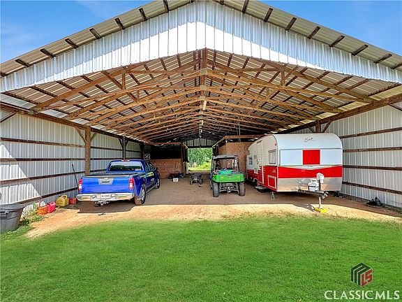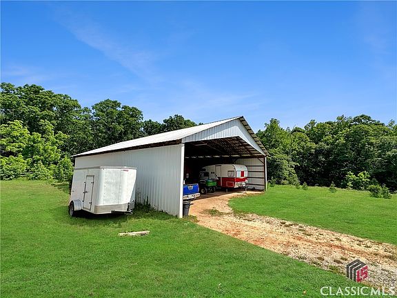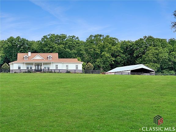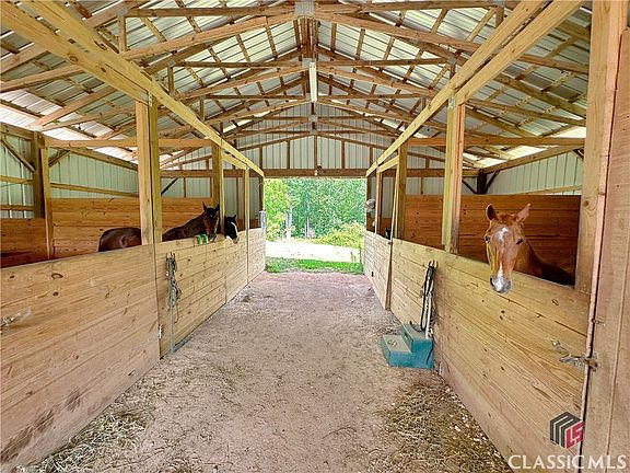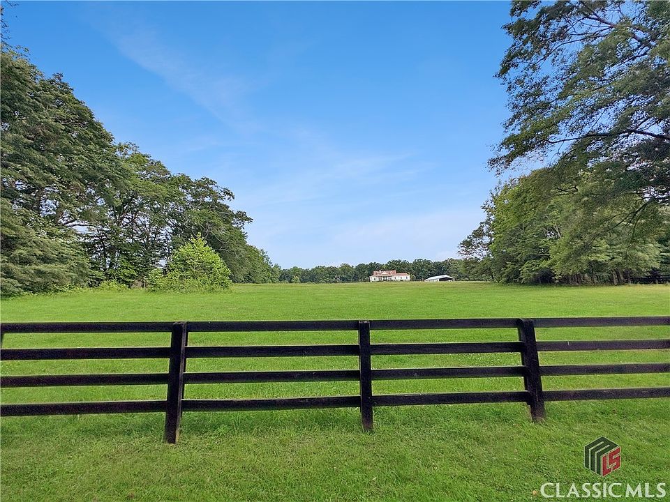 Amazing 13.9 acre mini-farm that is ready for you and your animals with a beautiful ranch open split floor plan with large front and back covered porches overlooking the farm with 3 bedrooms and 2.5 bathrooms with a bonus room. Drive up to the property with black four board wood fence around the pastures with a view of the home. Driving along the pasture, you cannot wait to get to the home and pole barn with horse stalls, tack room and storage. When you step on the front covered porch of the home with ceiling fans the views are stunning to the pastures. This is exactly where you will enjoy relaxing in a rocking chair! Lots of room to sit and enjoy the scenes whether in the morning or evening. Step into the home through custom glass double wood entry doors to beautiful hardwood floors throughout the home and 10' ceilings. The lighting throughout the home accent each space. To the left is the Dining Room Area with views out to the front pasture. Beyond the entrance foyer is the open Great Room and Kitchen with a double-sided brick fireplace that is open to the Dining Room and the Great Room. There are lots of windows with natural light on the back of the home that also provide great views of the property. Custom Bali window blinds in the Great Room. Enjoy conversations or watch TV while you are in the Kitchen. The Kitchen has a large island with a sink and stools. The wood counter tops bring great character to the Kitchen along with lots of custom cabinets that extend to the ceiling. The stainless propane six burner Wolf Stove is ready to cook your meals. The dishwasher is a top of the line Maytag. The walk-in Kitchen pantry is spacious. The Master Suite is on the right side of the home with windows that have great views of the outdoors. The Master Bathroom has a claw tub, separate tiled shower, two separate vanities, water closet and a huge walk-in closet that includes the washer and dryer with cabinets. There is a bonus room to the right after you enter into the home along with a hall to the right that leads to a half guest bathroom, entrance to the two-car garage, and a door that leads you to the washer and dryer at the back area of the Master walk-in closet. On the left side of the home are the two additional bedrooms both with ceiling fans and walk-in closets and a shared full bathroom with double sinks and a shower/tub combo. There is a whole house water filter. On the back covered porch, you can relax and enjoy a meal or sit and watch TV. There is a patio in the fenced backyard area for your grill and chairs to kick back and enjoy the scenery! There are raised beds for a vegetable garden and/or flowers. The pole barn(36'x60') has power with one side having four spacious stalls and a tack room and the other side used for storage of the camper(s), vehicles and/or equipment. There is a separate shed on the property for your tractor. There are five garden hose fixtures and one farm spigot. There are two large pastures that all have four boarded black wood fencing. There are ten fruit trees, two Chestnut Trees, one mature Black Walnut, one Pecan tree along with Raspberry, Blueberry, and Blackberry bushes. The property is located just 10 minutes from Ingles, Kroger, restaurants and shops in Hull. It is 20 minutes from the University of Georgia. Schedule your viewing today of this great property!