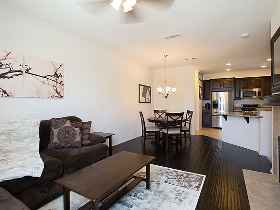 Seller will entertain offers between $379,000 - $399,000. WOW! Unbelievable 3/3.5 in model like condition. Bright spacious kitchen that opens into the dining and living areas makes this a great home for entertaining. Granite countertops, stainless steel appliances and plantation shutters throughout. This homes includes neutral berber carpet and dark laminate flooring. Each bright and airy bedroom has its own private full bath. Home has large two car, side-by-side with lots of room for storage. This beautiful community includes, pool, spa and gym.