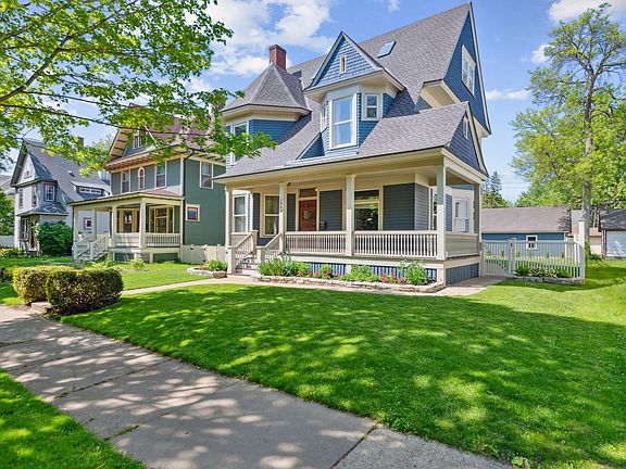 Unique opportunity to enjoy the history, charm and character of this St. Paul gem. Nestled in the heart of Merriam Park, close to Universities, sporting venues, vibrant eateries and shopping. This home adorns a beautiful wrap-around front porch overlooking a quiet tree lined street. The generous foyer with original woodwork and grand staircase welcomes you to spacious living areas and a remodeled, light filled kitchen for the budding chef. A deck off the kitchen provides the perfect space to enjoy the fenced yard, fire pit and access to the expansive three car garage. Upstairs you’ll find a timeless and well-appointed full bath and four sun-drenched bedrooms. Venture to the stunning third floor where 12’ ceilings give way to an open and inviting space accompanied by a generous spa like en suite bath, sky lights and the feeling of being in your own private oasis. Updates include new AC & Furnace in 2018, New carpet in bedrooms, NEW roof in 2022.