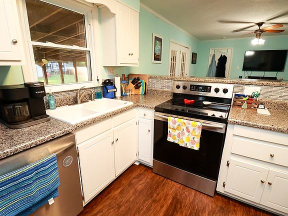 Lee County...Updated Kitchen with pantry, glass tile and Stainless Steel appliances that remain with the property. Living area, kitchen and hall have updated flooring. Some plantation shutters. Three bedroom and two baths. Laundry Area. Brick with carport and front porch on almost and acre lot. Screen Porch looking out over large private fenced in backyard with shed. Fire pit area. Coe Pond. Workshop/Craft room or storage room attached to the house. HVAC is less than 5 years old. Adorable home, A must see! Call your real estate agent to make an appointment.