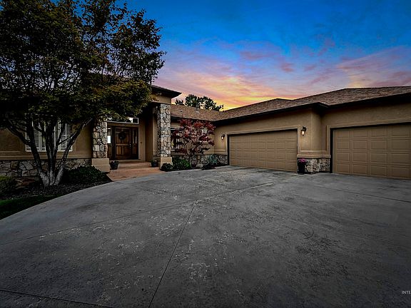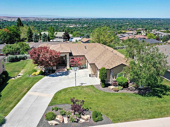 Perched on the hillside of desirable Boulder Heights overlooking everything Boise has to offer; downtown, BSU, Owyhee Mountain range, and the Boise River. You can see for miles. Rare to also have a .37 acre completely usable, flat lot in this location. Custom built home with an open great room concept that captures the surrounding views and opens to a porch for evening dining and relaxing. Fireplace and built-ins welcome you to the living area. Kitchen has a central island and eating nook with an abundance of light. This home also offers a main level primary suite with patio, office, powder bath, and laundry. Lower level is all daylight and features a family room, gym space, three additional bedrooms and two full bathrooms; all with beautiful natural light. Large storage space, oversized three car garage, and new HVAC system. Home is meticulously cared for and ready for its next owners.